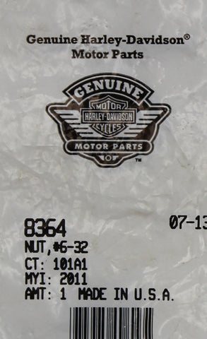 Genuine Harley-Davidson Nut #6-32 Part Number - 8364