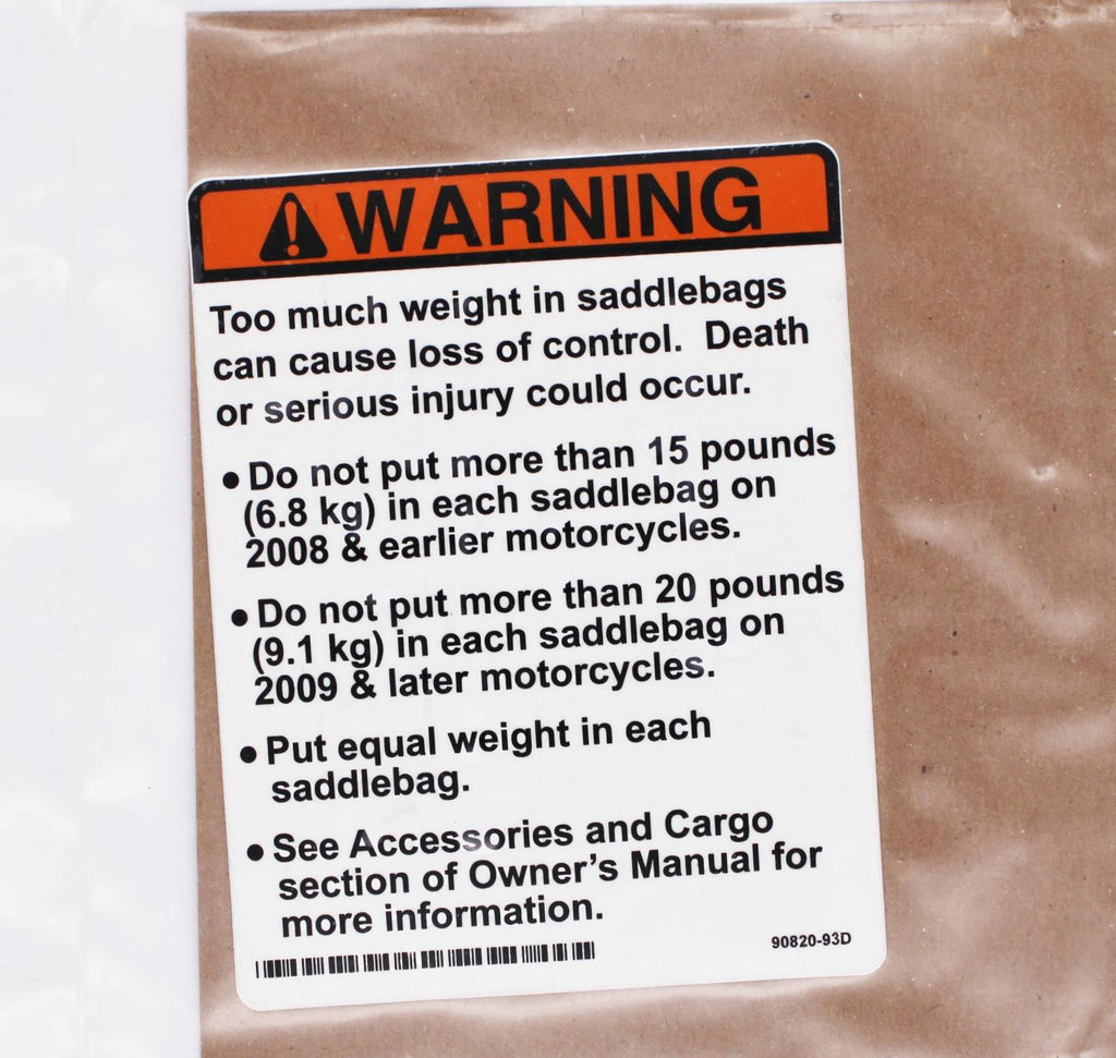 Saddle Bag Label Part Number - 90820-93D For Harley-Davidson