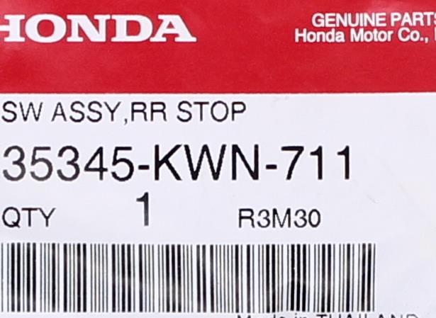 Genuine Honda Stop Switch Assembly Part Number - 35345-KWN-711
