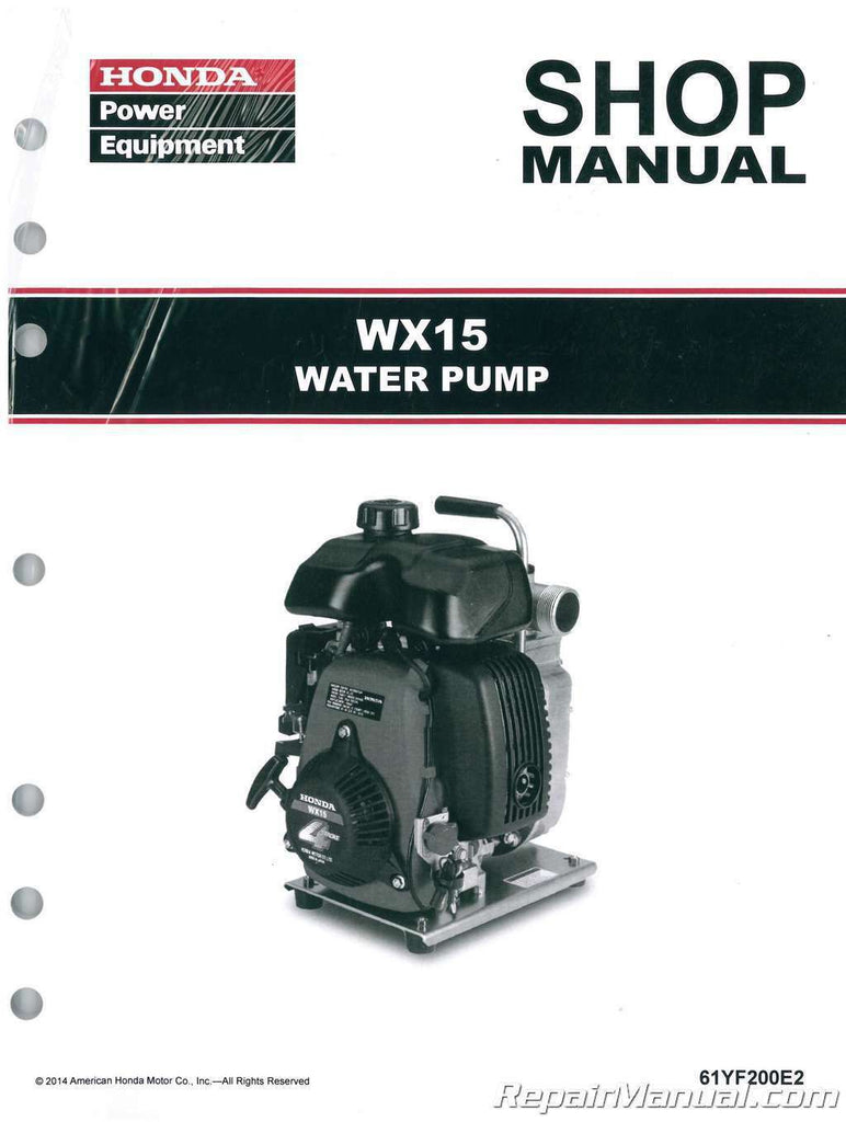 Honda Shop Manual - Water Pump WX15 Part Number - 61YF200