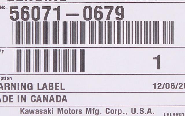 Genuine Kawasaki Warning Label Part Number - 56071-0679