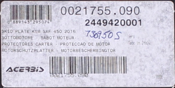 Acerbis Skid Plate Part Number - 730950S